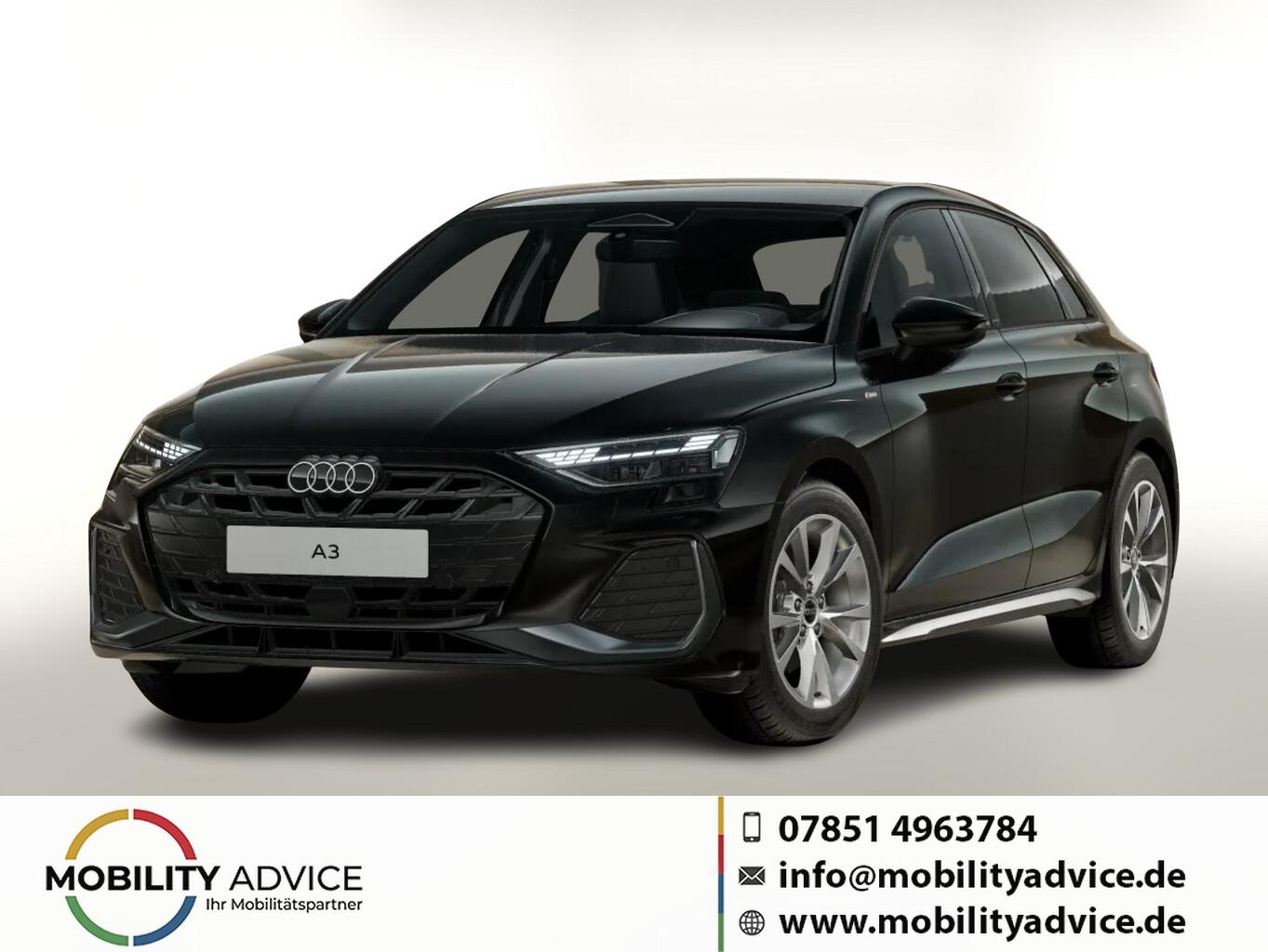 Infotainment-Paket (Audi Application Store und Smartphone Interface / Audi connect (Internetbasierende Dienste) / Kombiinstrument digital (virtual cockpit plus) / Sound-System DSP / Audi Sound-System / Multi-Media-Interface MMI Navigation Plus mit MMI Touch), Klima-Paket (Komfort-Klimaautomatik 3-Zonen / Sitzheizung vorn), Scheinwerfer LED (Heckleuchten LED mit dynamischem Blinklicht), Assistenz-Paket Fahren (Fahrassistenz-System: Adaptive Geschwindigkeitsregelanlage (Adaptive Cruise Control) mit Autom. Distanzregelung / Rückfahrkamera / Einparkhilfe vorn und hinten, akustisch und optisch mit selektiver Anzeige (APS Plus) / Fahrassistenz-System: Parklenkassistent mit selektiver Anzeige / Fahrassistenz-System: Spurverlassenswarnung inkl. Notfall-Assistent), Interieur-Paket: Sportsitze, Sitzbezug Stoff (Dachhimmel Stoff / Einstiegsleisten mit Aluminiumeinlage / Innenausstattung: Aluminium-Optik / Sitzbezug / Polsterung: Stoff Routine / Rücksitzlehne geteilt/klappbar / Sportsitze vorn), Gepäckraumklappe elektr. betätigt (öffnen + schliessen), Verglasung hinten abgedunkelt (Privacyverglasung), Audi Drive Select, Ambiente-Lichtpaket, Anschlussgarantie (1 Jahr / 90.000 km), Antiblockiersystem (ABS), Außenspiegel elektr. verstell-, heiz- und anklappbar, mit Abblendautomatik und Beifahrerspiegelabsenkung, Einstiegsleisten mit Aluminiumeinlage, Elektronische Stabilitätsprogramm (ESP), Fahrassistenz-System: Notbremsassistent, Innenspiegel mit Abblendautomatik, Komfortöffnung Gepäckraumklappe, Lendenwirbelstützen vorn, elektr. verstellbar, Mittelarmlehne vorn, Ottopartikelfilter (OPF), S line Exterieur, Serviceintervall 30.000 km oder 2 Jahre, Sommerreifen 225/45 R17, Zentralverriegelung, Isofix-Aufnahmen für Kindersitz an Beifahrersitz und Rücksitz (Isofix-Aufnahmen für Kindersitz), Außenspiegel Wagenfarbe, Dachkantenspoiler S-line, Fensterzierleisten schwarz, Geschwindigkeits-Begrenzeranlage, Heckscheibenwischer, Innenausstattung: Dekoreinlagen Feinlack Grau, Karosserie: 5-türig, Kindersicherung elektr. betätigt, Kopfstützen hinten (3-fach), Lenkrad (Leder - 3-Speichen) mit Multifunktion plus und Schaltfunktion, Mild-Hybrid 85 kW (Motor 1,5 Ltr. - 85 kW TFSI), Parkbremse elektro-mechanisch, Radioempfang digital (DAB), Sitzbelegungserkennung für Sicherheitsgurte, Sitze vorn manuell einstellbar, Stoßfänger Sport-Design (S-line), Vorbereitung Lichtassistent für weitere Funktionen (feature on demand, FOD), Bluetooth-Freisprecheinrichtung mit Audi Phone Box light, USB-Ladeanschlüsse (2-fach, Typ C) für Fondpassagiere, Fahrassistenz-System: Bremsassistent (Audi pre sense front), LM-Felgen 8x17 (5-V-Speichen-Design), Wegfahrsperre (elektronisch), Getriebe 7-Gang - Doppelkupplungsgetriebe S-tronic, Airbag Beifahrerseite abschaltbar, Airbag Fahrer-/Beifahrerseite, Kopf-Airbag-System (Sideguard), Schließ-/Startsystem Advanced Key (Komfortschlüssel), Seitenairbag vorn, Seitenairbag vorn mitte (Interaktionsairbag), Wärmeschutzverglasung grün getönt, Fahrassistenz-System: Verkehrszeichenerkennung, Multifunktionskamera, Audi connect (Notruf- und Assistance-System), Fahrassistenz-System: Notfall-Assistent mit automatischem Notruf, Servolenkung elektro-mechanisch, Licht- und Regensensor, Tagfahrlicht, Fahrassistenz-System: Ausweich-Assistent, Fahrassistenz-System: Kreuzungs-Assistent, Fahrassistenz-System: Müdigkeitserkennung (Pausenempfehlung), Reifendruck-Kontrollsystem, Start-Stop-Knopf, Start/Stop-Anlage