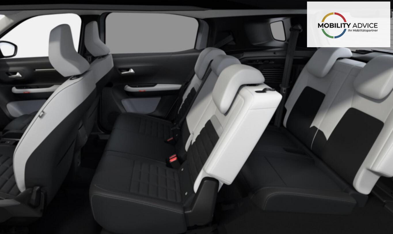 Sitz-Paket 7-Sitzer (2 Zusatzsitze (7 Sitze) / Kopfstützen hinten verstellbar / USB-Anschluss (Typ C)), Einparkhilfe vorne, hinten, Einschaltautomatik für Fahrlicht, LM-Felgen 17 Zoll (Aragonite), Navigation in Verbindung mit dem Smartphone (über Apple Carplay / Android Auto / ...), Reifen 215/60 R17, Rückfahrkamera, Smartphone Schnittstelle kabellos (Apple CarPlay / Android Auto), Paketkombination: Sicherheit und Totwinkel-Assistent (Elektr. Bremskraftverteilung / Anti-Blockier-System (ABS) / Bremsassistent / Fahrassistenz-System: Aktiver Notbrems-Assistent (Active Safety Brake) / Antischlupfregelung (ASR) / Elektron. Stabilitäts-Programm (ESP) / Fahrassistenz-System: Berganfahrhilfe / Geschwindigkeits-Regelanlage (Tempomat) inkl. Geschwindigkeits-Begrenzeranlage / Fahrassistenz-System: Totwinkel-Assistent / Fahrassistenz-System: Aufmerksamkeits-Assistent (Müdigkeitserkennungs-Sensor) / Fahrassistenz-System: Spurassistent (AFIL) / Sicherheits-Paket), Mittelarmlehne vorn (Mittelkonsole mit Ablagefach), Außenspiegel mit Abdeckkappen schwarz, Citroen Advanced Comfort Sitze, Comfort Federung (Citroen Advanced), Heckscheibe heizbar, Heckscheibenwischer, Induktionsladeschale für Smartphone (Wireless Charging), Innenspiegel mit Abblendautomatik, Karosserie: 5-türig, Mild-Hybrid 107 kW (Motor 1,2 Ltr. - 100 kW), Otto-Partikelfilter (GPF), Parkbremse elektrisch, Radstand 2670 mm, Sitz vorn links höhenverstellbar, Audio-Navigationssystem: 3D Navigation mit 10,25 Zoll Touchscreen, USB-/Audio-Schnittstelle (Typ C, 2-fach), Antriebsart: Frontantrieb, Getriebe Automatik - Doppelkupplungsgetriebe (6-Stufen, Hybrid), Klimaautomatik, Airbag Beifahrerseite abschaltbar, Airbag Fahrer-/Beifahrerseite, Kopf-Airbag-System und Seitenairbag, Fensterheber elektrisch hinten, Fensterheber elektrisch vorn, Isofix-Aufnahmen für Kindersitz an Rücksitz, Rücksitzlehne geteilt/klappbar 1/3-2/3, Seitenscheiben hinten und Heckscheibe dunkel getönt, Zentralverriegelung mit Fernbedienung, Head-up-Display (Kombiinstrument hochgesetzt), Dachreling schwarz, Fahrassistenz-System: Verkehrszeichenerkennung, Lenkrad (Spaltleder), Außenspiegel elektr. verstell-, heiz- und anklappbar, Heckleuchten LED, 3D-Optik, Scheibenwischer mit Regensensor, Scheinwerfer Eco-LED, Tagfahrlicht LED, Reifendruck-Kontrollsystem, Stop-Start-Anlage