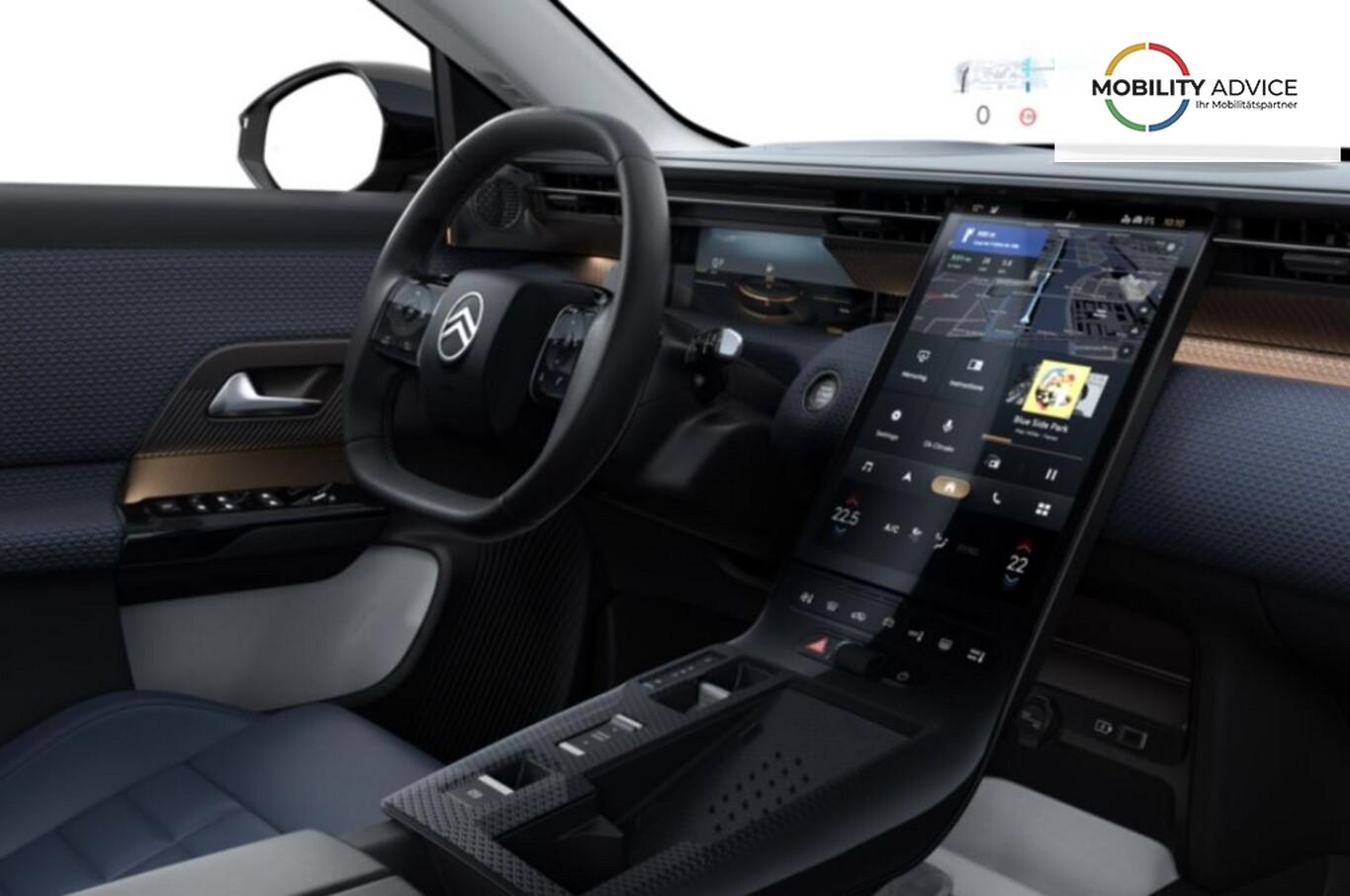 Reifen-Reparaturkit, Ablagetaschen an Rückseite der Vordersitzlehnen, Airbag Beifahrerseite abschaltbar, Airbag Fahrer-/Beifahrerseite, Antiblockiersystem (ABS), Antischlupfregelung (ASR), Außengriffe in Wagenfarbe, Außenspiegel mit Memoryfunktion, Bluetooth-Schnittstelle, Bordcomputer, Dekoreinlagen Armaturenbrett Blau, Einschaltautomatik für Fahrlicht, Elektron. Stabilitäts-Programm (ESP), Fahrassistenz-System: Aktiver Notbrems-Assistent (Frontradar-Assistent), Fahrassistenz-System: Auspark-Assistent (RCTA), Fahrassistenz-System: Fernlichtassistent adaptiv, Fahrassistenz-System: Halbautomatischer Spurwechselassistent, Fahrassistenz-System: Müdigkeitserkennung, Fahrassistenz-System: Spurhalteassistent, Fahrassistenz-System: Spurpositionierungsassistent (LPA), Fahrassistenz-System: Totwinkel-Assistent, Fahrassistenz-System: Verkehrszeichenerkennung, Freisprecheinrichtung Bluetooth, Frontscheibe geräuschdämmend, Fußraumbeleuchtung LED, Gepäckraumbeleuchtung LED, Gurtwarnanlage, Handschuhfachbeleuchtung LED, Heckscheibe heizbar mit Heckscheibenwischer, Highway Driving Assist 2.0, Isofix-Aufnahmen für Kindersitz, Kindersicherung manuell, Klimaautomatik (2-Zonen), Kopf-Airbag-System hinten, Kopf-Airbag-System vorn, Lendenwirbelstütze Sitz vorn links elektr. verstellbar, Lenkrad (Kunstleder) mit Schaltwippen, Leuchtweitenregulierung automatisch, LM-Felgen 19", Matrix-LED-Scheinwerfer, Notrufsystem eCall, Ottopartikelfilter (OPF), Radioempfang digital (DAB), Reifendruck-Kontrollsystem, Seitenairbag vorn, Servolenkung (elektrisch), Sitz vorn links elektr. höhenverstellbar, Sitz vorn links mit Memoryfunktion, Sitz vorn rechts höhenverstellbar, Sitzbezug/Polsterung: Stoff/Kunstleder, Smartphone-Schnittstelle (Apple CarPlay & Android Auto), Sommerreifen 225/55 R19, USB-Anschluss (Typ C), Verzurrösen (4), Vorbereitung Anhängerkupplung, Wegfahrsperre, Zentralverriegelung mit Fernbedienung, Sitze vorn einstellbar, links elektrisch 8-fach, rechts manuell 6-fach inkl. Sitzheizung (Sitzheizung vorn), Ambiente-Beleuchtung LED, Audio-Navigationssystem: Citroen Connect Nav (Touchscreen 13"), Außenausstattung: Farbclips in Gold Satin, Außenspiegel mit Einparkfunktion/Rückwärtsparkhilfe, Comfort Federung (Citroen Advanced), Induktionsladeschale für Smartphone (Wireless Charging), Innenspiegel mit Abblendautomatik, Karosserie: 5-türig, Koffer-/Laderaumboden variabel (Moduboard), Kombiinstrument digital (10,0 Zoll), Lenkrad heizbar, Lenksäule (Lenkrad) mech. höhen-/längsverstellbar, Luftqualitäts-Überwachungssystem und Luftfiltersystem (Clear Cabin), Mild-Hybrid 107 kW (Motor 1,2 Ltr. - 100 kW), Parkbremse elektrisch, Pedale Aluminium, Radstand Standard, Rücksitz mit Armlehne, Sonnenblenden mit Spiegel (beleuchtet), Steckdose (12V-Anschluß) 3-fach, Antriebsart: Frontantrieb, Getriebe Automatik - Doppelkupplungsgetriebe (6-Stufen, Hybrid), Fensterheber elektr. hinten mit Impulsgeber, Fensterheber elektr. vorn mit Impulsgeber, Mittelarmlehne vorn, Rücksitzlehne geteilt/klappbar, Seitenscheiben hinten und Heckscheibe dunkel getönt, Zentralverriegelung / Startanlage Keyless System, Head-up-Display, Kofferraumdeckel / Heckklappe elektr. betätigt (öffnen + schliessen, sensorgesteuert), Adaptive Geschwindigkeitsregelanlage (ACC) inkl. Stop&Go und Geschwindigkeits-Begrenzeranlage, Lenkrad mit Multifunktion, Außenspiegel elektr. verstell-, heiz- und anklappbar, Außenspiegel mit Umfeldleuchte, Heckleuchten LED, Scheibenwischer mit Regensensor, Tagfahrlicht LED, Einparkhilfe vorn und hinten inkl. Visio Park Rückfahrkamera mit 360° Umgebungsansicht, Start-Stop-Knopf