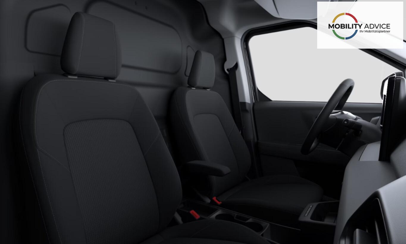 Reserverad in Fahrbereifung, 12V-Steckdose vorn, Armlehne für Fahrersitz, Fahrassistenz-System: Müdigkeitserkennungs-Sensor, Laderaumleuchte, Laderaummatte hinten durchgängig, Laderaumtrennwand geschlossen (Stahl), LED-Lichtleiste im Kühlergrill, Lendenwirbelstütze Sitz vorn links, Notrufsystem, Reifen 205/65 R16, Sitz vorn links verstellbar (6-fach), Sitz vorn rechts falt- und versenkbar, Sitz vorn rechts verstellbar (4-fach), Sitzbezug / Polsterung: schwarz, Sonnenblenden vorn, Stahlfelgen 16 Zoll, Winter-Paket inkl. Sitzheizung vorn, Lenkrad heizbar, Frontscheibe heizbar, Fahrer-Assistenz-Paket 2 (4 Lautsprecher / Audio-Paket 2 / Farbdisplay (12 Zoll) / Intelligenter Geschwindigkeits-Begrenzer / Radioempfang digital (DAB) / Smartphone-Integration (Apple CarPlay und Android Auto) / Audiosystem: Radio / Sprachsteuerung und Bluetooth-Schnittstelle / USB-Anschluss / Fahrassistenz-System: Pre-Collision-System / Fensterheber elektrisch vorn, mit Auf-/Ab-Automatik / Fahrassistenz-System: Falschfahrer-Warnfunktion / Fahrassistenz-System: Verkehrsschildassistent / Geschwindigkeits-Regelanlage (Tempomat) / Rückfahrkamera / Fahrassistenz-System: Fernlichtassistent (Scheinwerfer mit Abblendautomatik) / Nebelscheinwerfer / Parkpilotsystem hinten / Parkpilotsystem vorn und hinten / Fahrassistenz-System: Spurfolgeassistent (Lane Following Assist, LFA) / Fahrassistenz-System: Spurhalteassistent), Elektron. Stabilitäts-Programm (ESP) (Bremskraftverstärker elektrisch), Elektromotor 100 kW, Heckflügeltüren ohne Verglasung, HV-Batterie 54 kWh, Karosserie/Aufbau: Kasten, Ladekabel für öffentliche Ladesäulen, Mittelkonsole lang, Parkbremse elektrisch, Schiebetür rechts, Warnanlage für Sicherheitsgurte vorn, Antriebsart: Frontantrieb, Getriebe für Elektrofahrzeug, Klimaautomatik, Zusatzheizung, Airbag Beifahrerseite abschaltbar, Airbag Fahrer-/Beifahrerseite, Kopf-Schulter-Airbag vorn, Power KeyFree-Startfunktion, Seitenairbag vorn, Zentralverriegelung mit Fernbedienung, Bord-/Verbrauchscomputer, Außenspiegel elektr. verstell- und heizbar, Heckleuchten LED, Tagfahrlicht LED, Reifendruck-Kontrollsystem