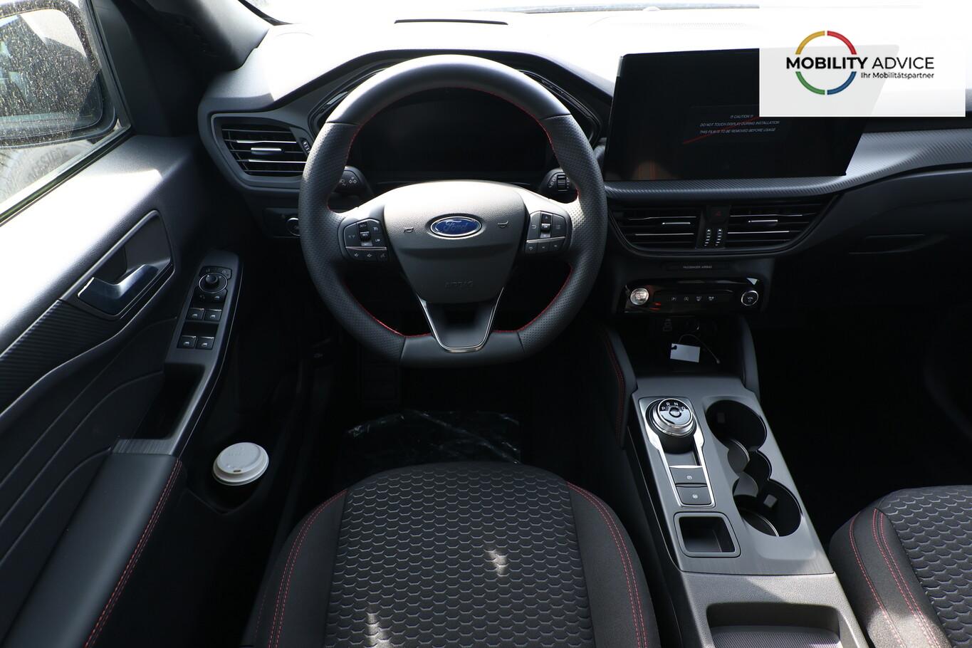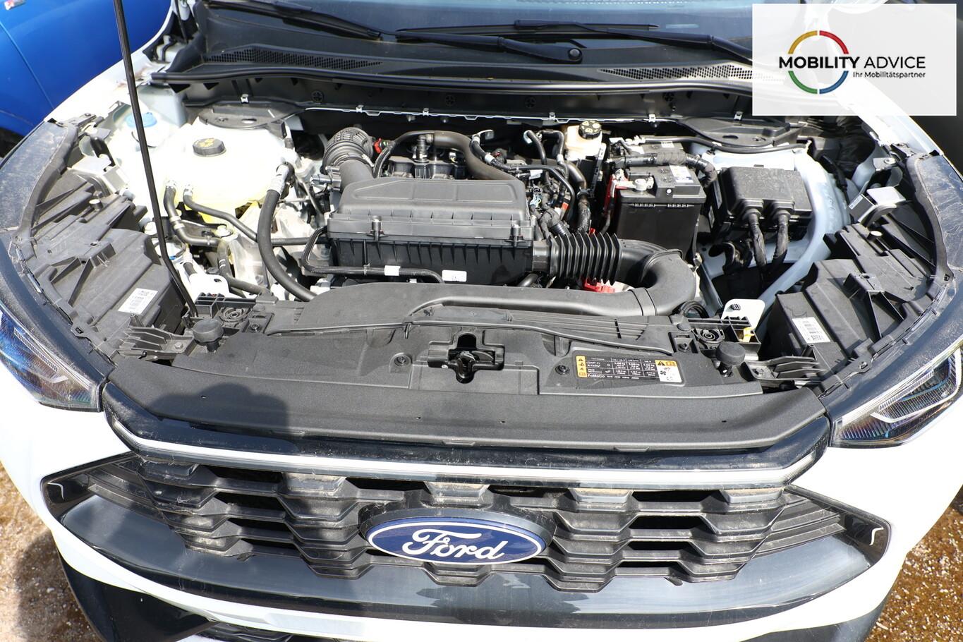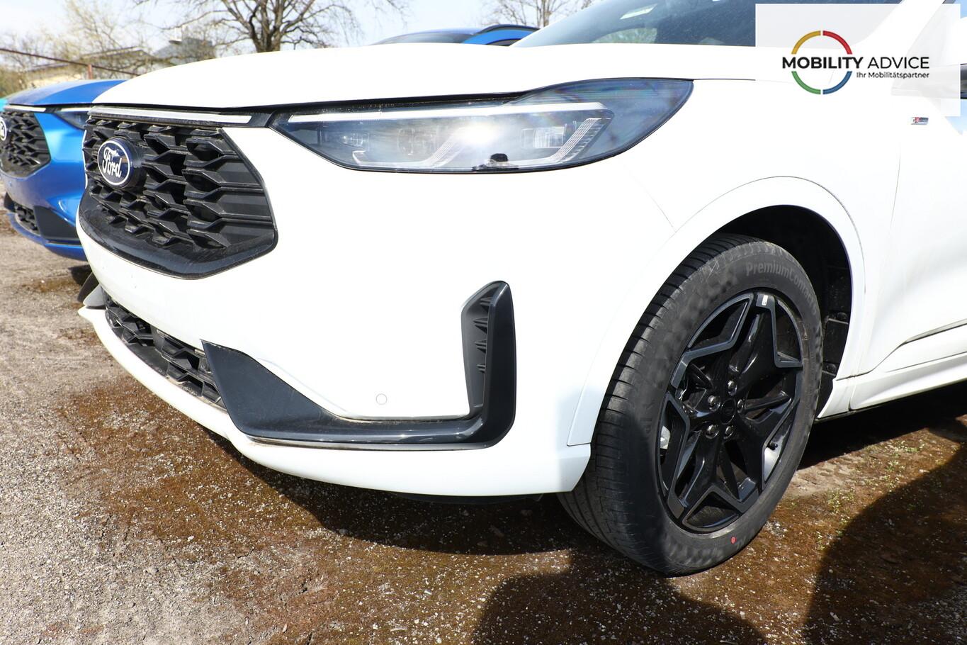 Matrix-LED-Scheinwerfer, Head-up-Display, Winter-Paket (Lenkrad heizbar / Sitzheizung hinten / Frontscheibe heizbar), Verglasung hinten abgedunkelt (Privacy Glass), Reserverad als Notrad, LM-Felgen 7,5x19 (5x2-Speichen, schwarz, glanzgedreht), 4 Verzurrösen, Ablagetaschen an Vordersitzlehnen, Beifahrerairbag deaktivierbar, Fahrassistenz-System: Falschfahrer-Warnfunktion, Fahrassistenz-System: Fernlichtassistent (Scheinwerfer mit Abblendautomatik), Fahrassistenz-System: Müdigkeitserkennungs-Sensor, Fahrassistenz-System: Verkehrsschildassistent, Handschuhfach beleuchtet, Lendenwirbelstütze Sitz vorn links, Parkbremse elektrisch, Reifen 225/55 R19, Sitz vorn links verstellbar (4-fach), Touchscreen-Farbdisplay 13,2 Zoll, Body-Styling-Paket (Kühlergrill schwarz / Seitenschweller Wagenfarbe / Stoßfänger Sport-Ausführung), Sitz vorn rechts verstellbar (8-fach) (Lendenwirbelstütze Sitz vorn rechts), Audio-Navigationssystem Ford mit AppLink (6 Lautsprecher / Radioempfang digital (DAB) / Ford SYNC IV mit Navigation / Sprachsteuerung und Bluetooth-Schnittstelle / USB-Anschluss / Audiobedienung am Lenkrad), Fahrassistenz-System: Pre-Collision-System (Fahrassistenz-System: Active City Stop / Fahrassistenz-System: Auffahrwarnsystem), KeyFree-System (Power KeyFree-Startfunktion), Mittelkonsole mit Armlehne (Getränkehalter vorn / Mittelarmlehne vorn mit Staufach und 12V-Anschluß), Geschwindigkeits-Regelanlage (Tempomat) (Intelligenter Geschwindigkeits-Begrenzer), Intelligent Protection System (IPS) (3-Punkt-Sicherheitsgurt hinten / Warnanlage für Sicherheitsgurte hinten / Warnanlage für Sicherheitsgurte vorn / Airbag Fahrer-/Beifahrerseite / Kopf-Schulter-Airbag vorn und hinten / Seitenairbag vorn), Ambiente-Beleuchtung vorn (LED), Dachhimmel Stoff, dunkel, Gepäckraumabdeckung / Rollo, Induktionsladeschale für mobile Endgeräte, Innenspiegel mit Abblendautomatik, Karosserie: 5-türig, Kombiinstrument Digitalanzeige 12,3 Zoll, Lenksäule (Lenkrad) höhen-/längsverstellbar, Motor 1,5 Ltr. - 137 kW EcoBoost KAT, Scheibenrahmen schwarz, Sonnenblende links mit Spiegel (beleuchtet), Sonnenblende rechts mit Spiegel (beleuchtet), Anti-Blockier-System (ABS), Antischlupfregelung (ASR), Antriebsart: Frontantrieb, Elektron. Stabilitäts-Programm (ESP), Getriebe Automatik - Typ: 8F35 (8-Stufen), Klimaautomatik 2-Zonen, Fensterheber elektrisch vorn + hinten mit Komfortschließung, Isofix-Aufnahmen für Kindersitz, Rücksitzlehne geteilt, Rücksitzlehne klappbar, Sitzheizung vorn, Zentralverriegelung mit Fernbedienung, Bordcomputer, Dachreling schwarz, Rückfahrkamera, Lenkrad (Sport/Leder, ST), Servolenkung elektrisch, Außenspiegel elektr. anklappbar, Außenspiegel elektr. verstell- und heizbar, Scheibenwischer mit Regensensor, Scheinwerfer-Assistent mit Tag-/Nachtsensor, Parkpilotsystem vorn und hinten, Fahrassistenz-System: Spurhalteassistent, Reifendruck-Kontrollsystem, Start/Stop-Anlage
