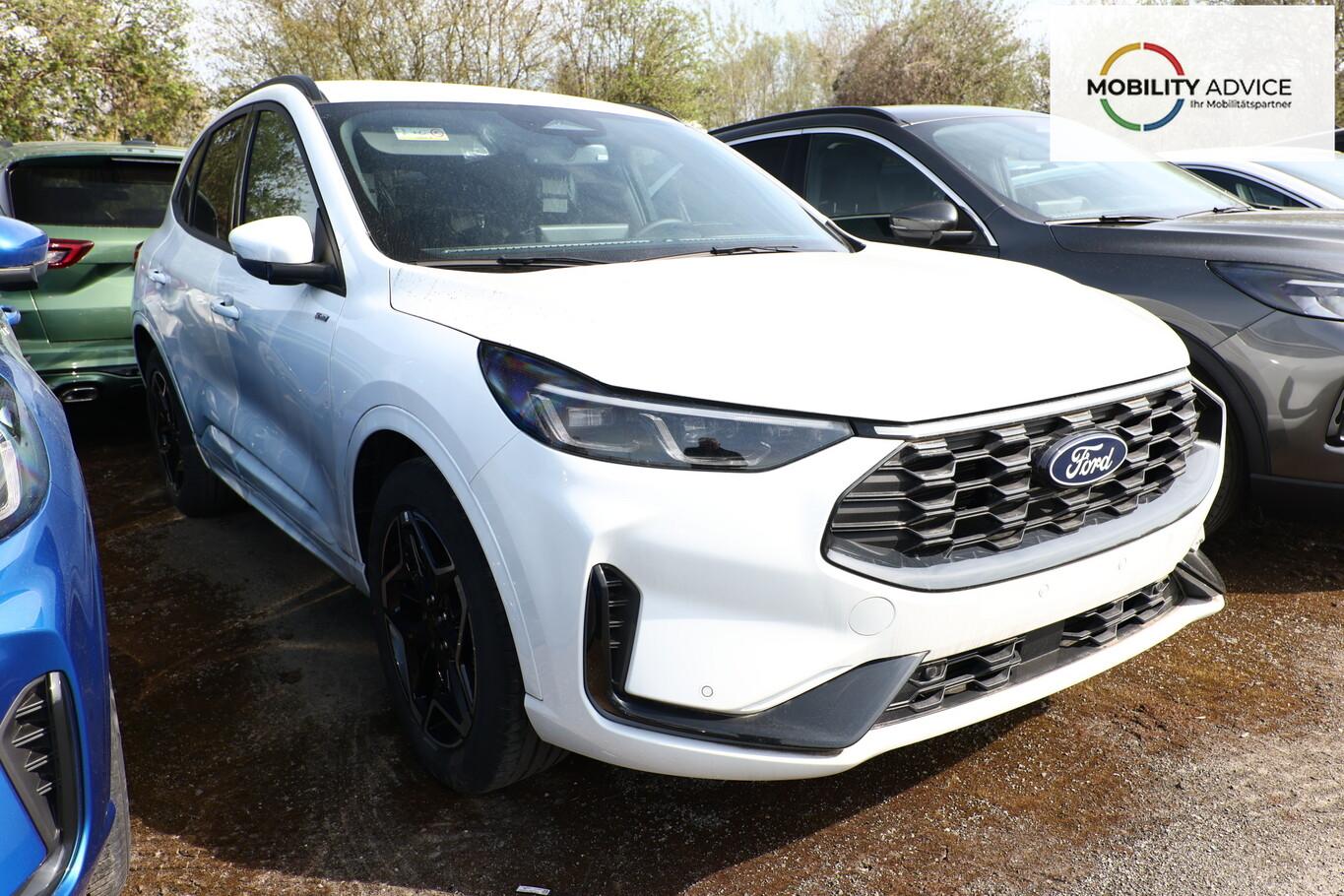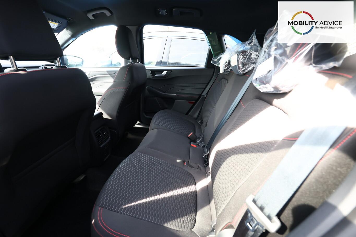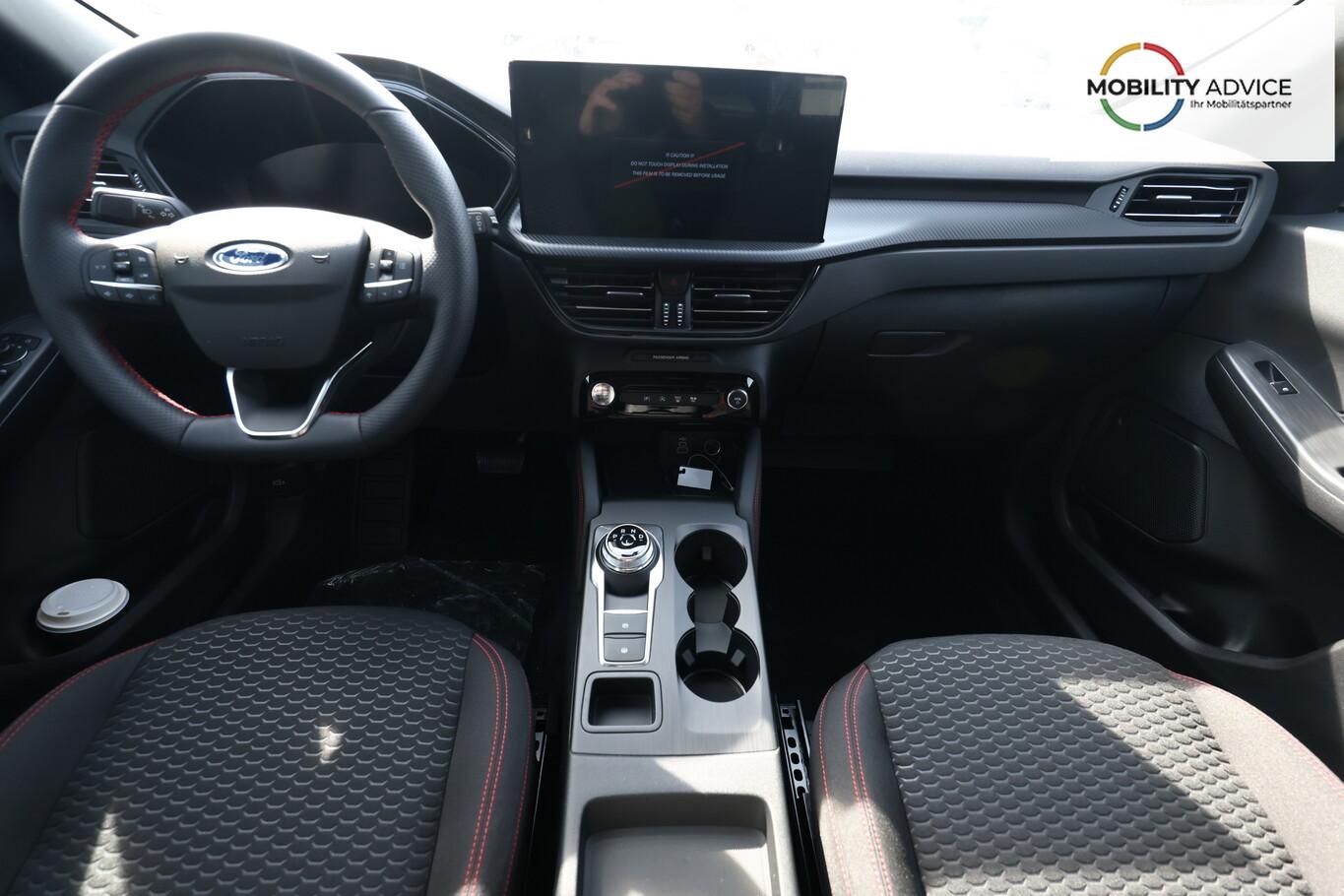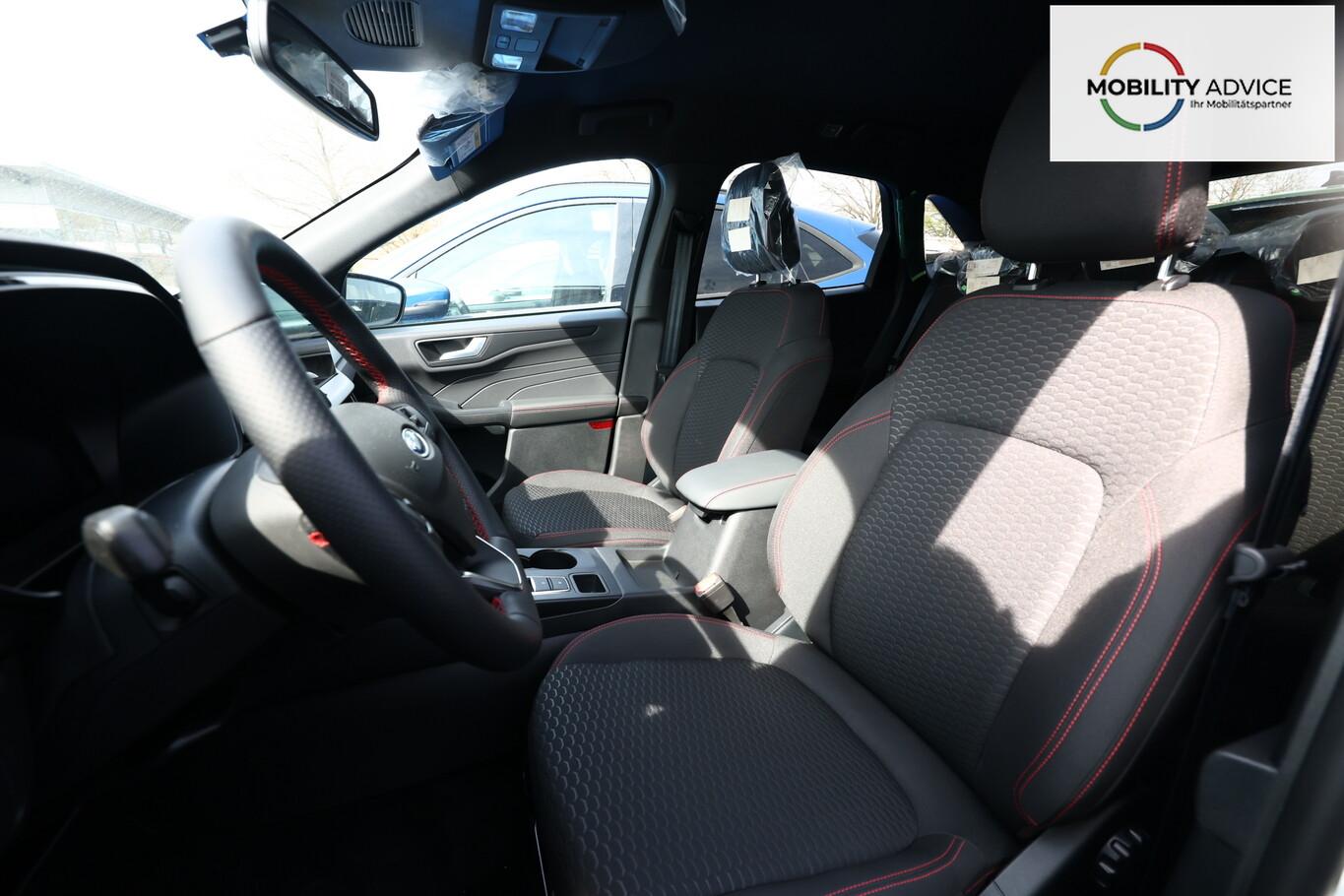 Matrix-LED-Scheinwerfer, Head-up-Display, Winter-Paket (Lenkrad heizbar / Sitzheizung hinten / Frontscheibe heizbar), Verglasung hinten abgedunkelt (Privacy Glass), Reserverad als Notrad, LM-Felgen 7,5x19 (5x2-Speichen, schwarz, glanzgedreht), 4 Verzurrösen, Ablagetaschen an Vordersitzlehnen, Beifahrerairbag deaktivierbar, Fahrassistenz-System: Falschfahrer-Warnfunktion, Fahrassistenz-System: Fernlichtassistent (Scheinwerfer mit Abblendautomatik), Fahrassistenz-System: Müdigkeitserkennungs-Sensor, Fahrassistenz-System: Verkehrsschildassistent, Handschuhfach beleuchtet, Lendenwirbelstütze Sitz vorn links, Parkbremse elektrisch, Reifen 225/55 R19, Sitz vorn links verstellbar (4-fach), Touchscreen-Farbdisplay 13,2 Zoll, Body-Styling-Paket (Kühlergrill schwarz / Seitenschweller Wagenfarbe / Stoßfänger Sport-Ausführung), Sitz vorn rechts verstellbar (8-fach) (Lendenwirbelstütze Sitz vorn rechts), Audio-Navigationssystem Ford mit AppLink (6 Lautsprecher / Radioempfang digital (DAB) / Ford SYNC IV mit Navigation / Sprachsteuerung und Bluetooth-Schnittstelle / USB-Anschluss / Audiobedienung am Lenkrad), Fahrassistenz-System: Pre-Collision-System (Fahrassistenz-System: Active City Stop / Fahrassistenz-System: Auffahrwarnsystem), KeyFree-System (Power KeyFree-Startfunktion), Mittelkonsole mit Armlehne (Getränkehalter vorn / Mittelarmlehne vorn mit Staufach und 12V-Anschluß), Geschwindigkeits-Regelanlage (Tempomat) (Intelligenter Geschwindigkeits-Begrenzer), Intelligent Protection System (IPS) (3-Punkt-Sicherheitsgurt hinten / Warnanlage für Sicherheitsgurte hinten / Warnanlage für Sicherheitsgurte vorn / Airbag Fahrer-/Beifahrerseite / Kopf-Schulter-Airbag vorn und hinten / Seitenairbag vorn), Ambiente-Beleuchtung vorn (LED), Dachhimmel Stoff, dunkel, Gepäckraumabdeckung / Rollo, Induktionsladeschale für mobile Endgeräte, Innenspiegel mit Abblendautomatik, Karosserie: 5-türig, Kombiinstrument Digitalanzeige 12,3 Zoll, Lenksäule (Lenkrad) höhen-/längsverstellbar, Motor 1,5 Ltr. - 137 kW EcoBoost KAT, Scheibenrahmen schwarz, Sonnenblende links mit Spiegel (beleuchtet), Sonnenblende rechts mit Spiegel (beleuchtet), Anti-Blockier-System (ABS), Antischlupfregelung (ASR), Antriebsart: Frontantrieb, Elektron. Stabilitäts-Programm (ESP), Getriebe Automatik - Typ: 8F35 (8-Stufen), Klimaautomatik 2-Zonen, Fensterheber elektrisch vorn + hinten mit Komfortschließung, Isofix-Aufnahmen für Kindersitz, Rücksitzlehne geteilt, Rücksitzlehne klappbar, Sitzheizung vorn, Zentralverriegelung mit Fernbedienung, Bordcomputer, Dachreling schwarz, Rückfahrkamera, Lenkrad (Sport/Leder, ST), Servolenkung elektrisch, Außenspiegel elektr. anklappbar, Außenspiegel elektr. verstell- und heizbar, Scheibenwischer mit Regensensor, Scheinwerfer-Assistent mit Tag-/Nachtsensor, Parkpilotsystem vorn und hinten, Fahrassistenz-System: Spurhalteassistent, Reifendruck-Kontrollsystem, Start/Stop-Anlage