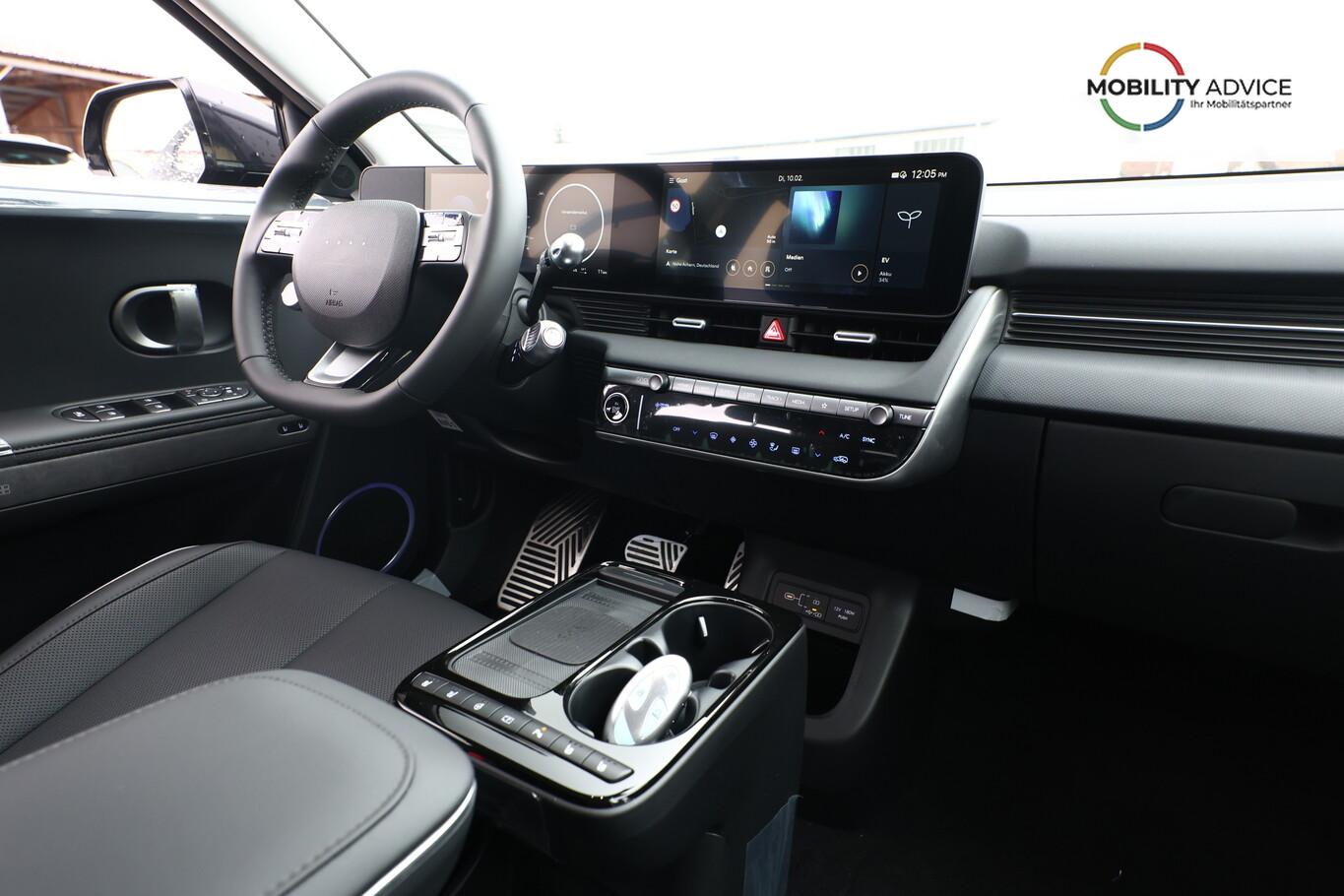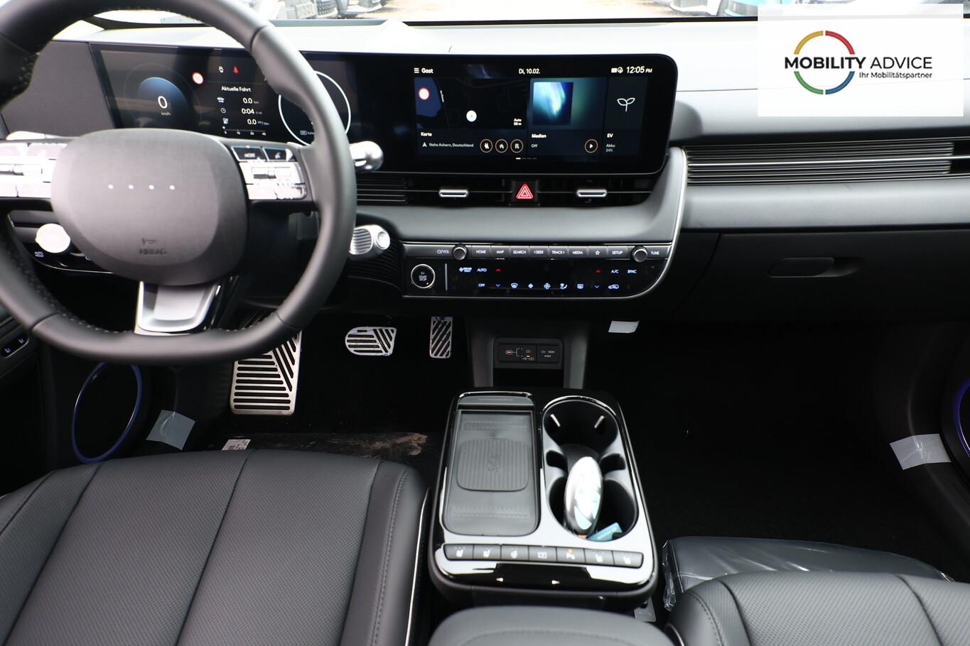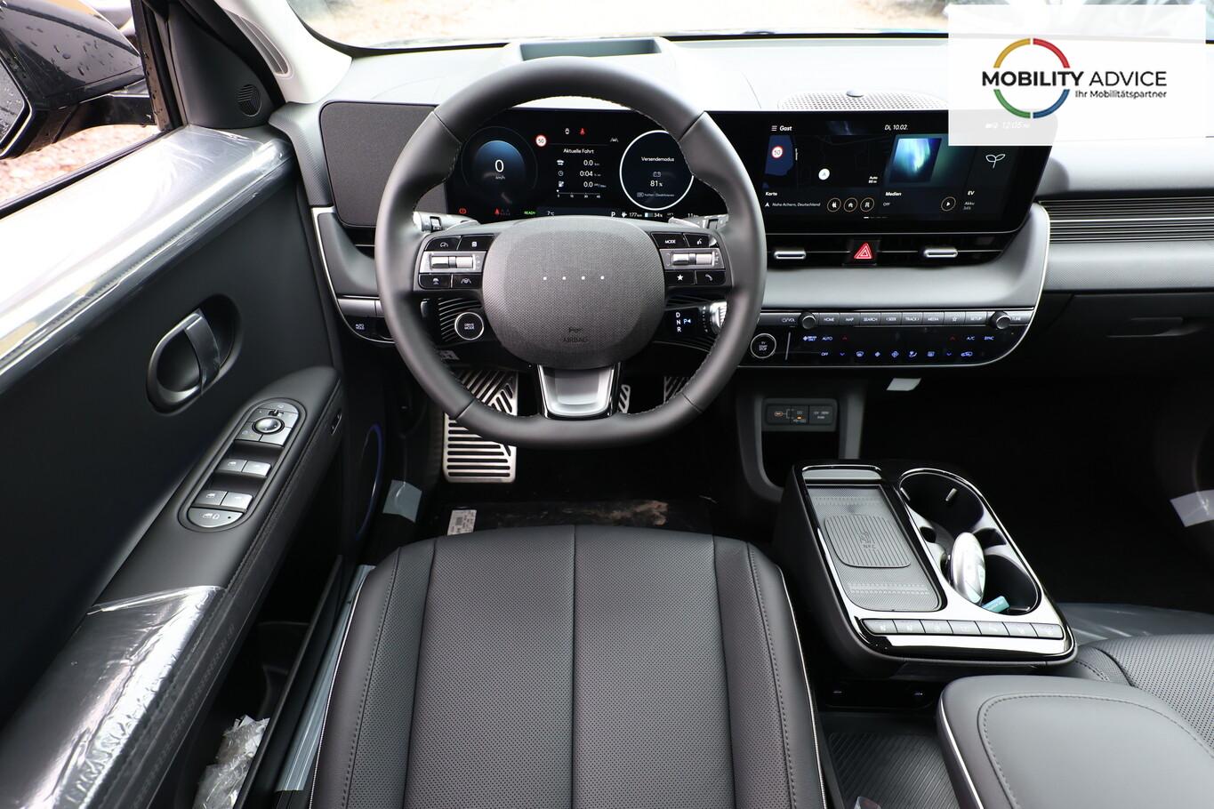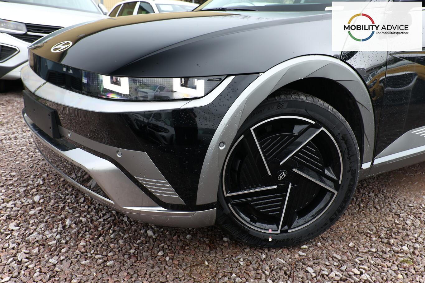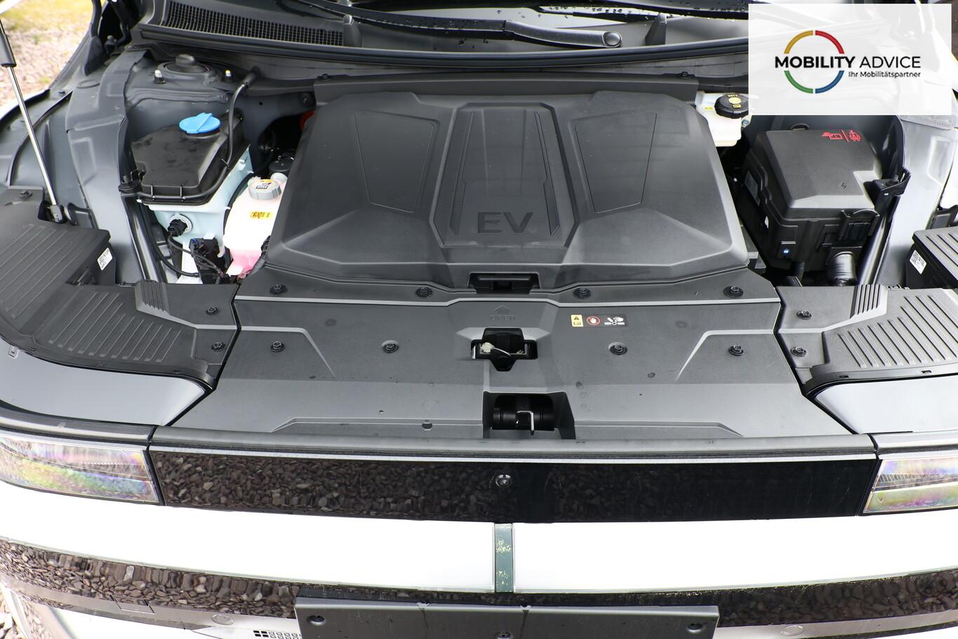 Park-Paket (Einparkhilfe seitlich / Radlaufabdeckung vorn und hinten lackiert / Seitenschutzleisten silber / Stoßfänger vorn mit Applikationen (Silber) / Fahrassistenz-System: City-Notbremsfunktion, rückwärts (PCA-R) / Kamerasystem Around View / Fahrassistenz-System: Totwinkel-Assistent mit Monitoranzeige (BVM) / Fahrassistenz-System: Remote Parklenkassistent (Remote Smart Parking Assist, RSPA)), Sound-System BOSE (7 Lautsprecher / Soundgenerator (innen) / Subwoofer), Ambientebeleuchtung, Bluetooth-Schnittstelle, Digitaler Fahrzeugschlüssel 2.0, Fahrassistenz-System: Spurwechselassistent, Freisprecheinrichtung Bluetooth, Head-up-Display, Kein Ladekabel vorhanden, LM-Felgen 20 Zoll, Mittelkonsole verschiebbar, Panorama-Glasdach, Reifen 255/45 R20, Relax-Paket, Rücksitzbank elektrisch verschiebbar, Sitzbelüftung vorn, Sitzbezug / Polsterung: Leder, Sitze vorn mit Memoryfunktion, Sitze vorn mit Relaxfunktion, SmartLink (Apple CarPlay & Android Auto), Sonnenrollos an den hinteren Türen (2. Sitzreihe), Wärmeschutzverglasung Frontscheibe, Dachspoiler (grosse Ausführung) (3. Bremsleuchte), LED-Paket (Blinkleuchten LED in Außenspiegel integriert / LED-Leuchtband vorn / Matrix-LED-Scheinwerfer), Audio-Navigationssystem (Touchscreen-Farbdisplay (12,25 Zoll)), Lenkrad (Leder) 3-Speichen (Lenkrad heizbar / Lenkrad (Leder) / Lenkrad (Leder) mit Multifunktion), Fahrassistenz-System: Autonome Notbremsfunktion inkl. Frontkollisionswarnung (FCA) (Fahrassistenz-System: Ausweich-Assistent (Evasive Steer Assistance, ESA) / Fahrassistenz-System: Ausweich-Assistent Fahrtrichtung (FCA-LS) / Fahrassistenz-System: Ausweich-Assistent Gegenverkehr (FCA-LO) / Fahrassistenz-System: Autonome Notbremsfunktion inkl. Abbiegefunktion (FCA-JT) / Fahrassistenz-System: Autonome Notbremsfunktion inkl. Fahrradfahrererkennung (FCA-Cyc.) / Fahrassistenz-System: Autonome Notbremsfunktion inkl. Fußgängererkennung (FCA-Ped.) / Fahrassistenz-System: Querverkehrs-Assistent vorn (Kreuzungs-Assistent)), Außenspiegel Unterschale schwarz lackiert, Batterieheizsystem, Elektromotor 168 kW (cont. 56 kW), Fahrassistenz-System: Autobahnassistent 2.0 (Highway Driving Assist, HDA 2.0), Fahrassistenz-System: Insassenalarm (RSA), Fahrassistenz-System: Multikollisionsbremse (Multi Collision Brake), Geschwindigkeits-Begrenzeranlage (Speed-Limiter), Heckscheibe heizbar, Heckscheibenwischer, HV-Batterie 84 kWh (Lithium-Ionen), Induktionsladeschale für Smartphone, Innenspiegel mit Abblendautomatik, Instrumentenanzeige Farbdisplay 12,25 Zoll, Karosserie: 5-türig, Kopfstützen hinten verstellbar, Kühlergrill, Aktive Luftklappen, regelbar, Ladevorrichtung On-Board-Lader (3-Phasen), Lendenwirbelstütze Sitz vorn links, elektr. verstellbar, Lendenwirbelstütze Sitz vorn rechts, elektr. verstellbar, Lenksäule (Lenkrad) höhenverstellbar, Lenksäule (Lenkrad) längsverstellbar, Mittelarmlehne hinten, Parkbremse elektrisch (EPB), Pedale Aluminium, Radioempfang digital (DAB+), Türgriffe außen ausfahrbar / versenkbar, elektrisch, Türgriffe außen Wagenfarbe, Wärmepumpe für Heizungs-/Klimaanlage, Audiosystem: Radio RDS, USB-Anschluss (Typ C), USB-Anschluss hinten (Typ C), USB-Anschluss Mittelkonsole, Anti-Blockier-System (ABS), Antriebsart: Heckantrieb, Elektron. Stabilitätskontrolle (ESC) mit Bremsassistent, Getriebe für Elektrofahrzeug, Klimaautomatik 2-Zonen, Airbag Beifahrerseite, Airbag Beifahrerseite abschaltbar, Airbag Fahrerseite, Fensterheber elektrisch vorn und hinten, mit Auf-/Ab-Automatik, Isofix-Aufnahmen für Kindersitz, Kopf-Airbag-System, Mittelarmlehne vorn verschiebbar, Rücksitzlehne geteilt/klappbar, Seitenairbag vorn, Seitenairbag vorn mitte (Central Airbag), Sitz vorn links elektr. verstellbar, Sitz vorn rechts elektr. verstellbar, Sitzheizung hinten, Sitzheizung vorn, Smart-Key, Verglasung hinten abgedunkelt (Privacy Glass), Zentralverriegelung mit Fernbedienung, Heckklappe/-Deckel elektr. betätigt (Öffnung, sensorgesteuert), Fahrassistenz-System: Berganfahrhilfe, Fahrassistenz-System: Verkehrszeichenerkennung, erweitert (Geschwindigkeits-Regel-/Begrenzeranlage), Geschwindigkeits-Regelanlage (Tempomat) mit Abstandsregelung ACC, Navigationsbasierte Adaptive Geschwindigkeitsregelanlage (Tempomat) mit Abstandsregelung (NSCC), Rückfahrkamera, Fahrassistenz-System: Sicherheitssystem mit automatischem Notruf (ERA GLONASS / eCall), Service-System: Remote Services (Blue Link), Lenkrad mit Schaltwippen, Außenspiegel elektr. anklappbar, Außenspiegel elektr. verstell- und heizbar, beide, Einschaltautomatik für Fahrlicht / Lichtsensor, Fahrassistenz-System: Fernlichtassistent, Heckleuchten LED (Pixel-Design), Scheibenwischer mit Regensensor, Fahrassistenz-System: aktiver Spurhalteassistent (LKAS, Lane Keep Assist System), Fahrassistenz-System: Aufmerksamkeits-Assistent, Fahrassistenz-System: Spurfolgeassistent (Lane Following Assist, LFA), Reifendruck-Kontrollsystem, Start-Stop-Knopf