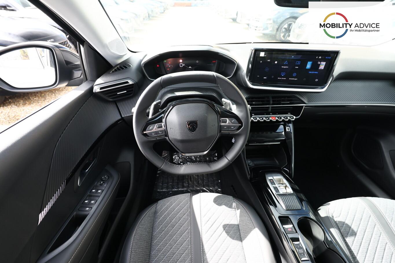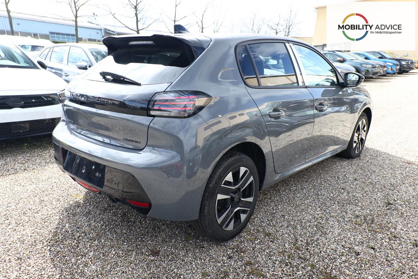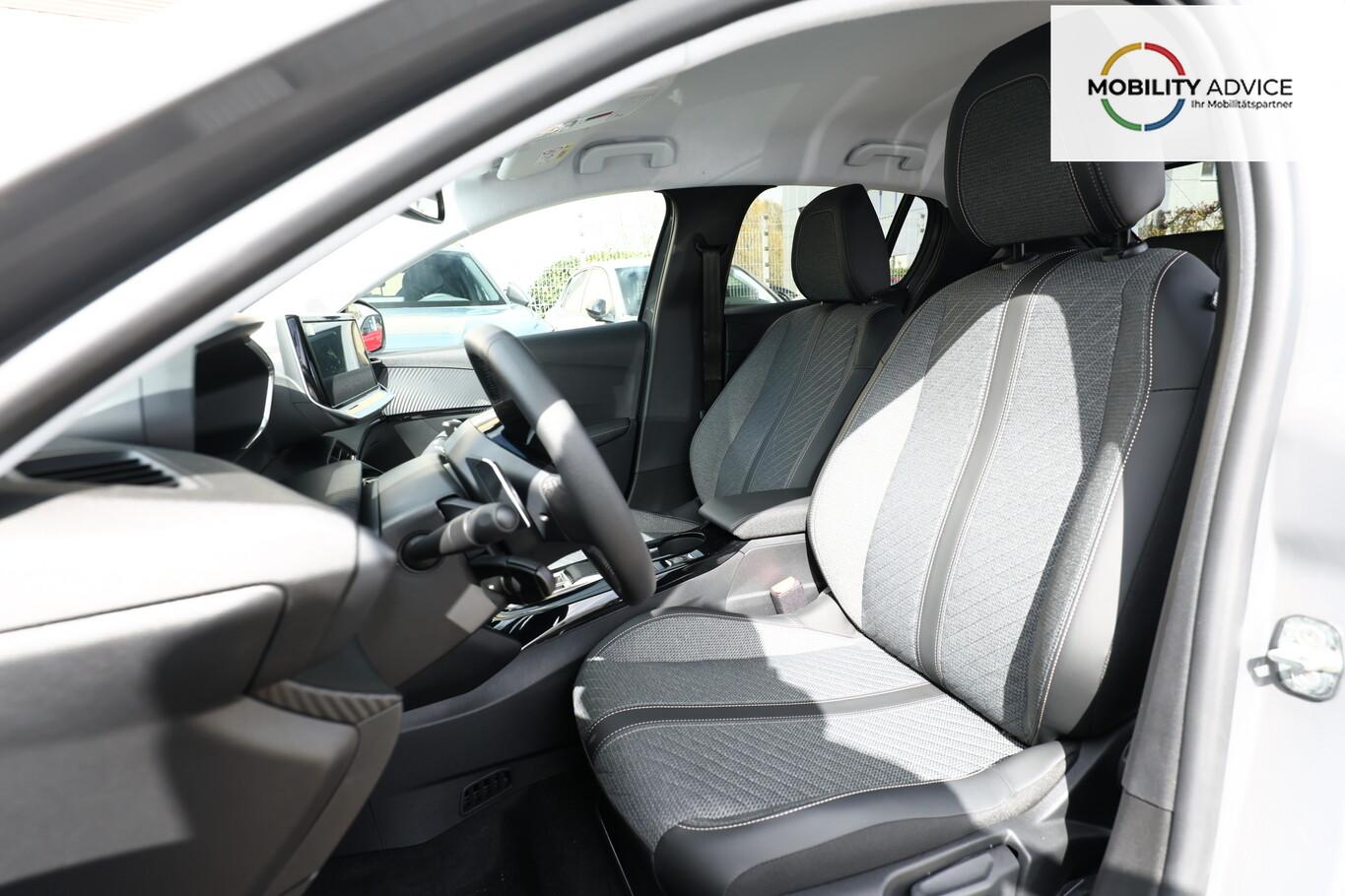 Sicht & Navigations-Paket (Multifunktionsanzeige mit HD Touchscreen-Farbdisplay 10 Zoll / Navigationssystem i-Connect Advanced / USB-Anschlüsse (Typ C und Typ A) / USB-Schnittstelle / Rückfahrkamera mit 360° Umgebungsansicht / Peugeot Connect-Box / SOS-Taste (Notruf für Lokalisierung Fahrzeug) / Fahrassistenz-System: Totwinkel-Assistent (SAM)), 6 Lautsprecher, Bluetooth Freisprechanlage, Fahrassistenz-System: Spurhalteassistent, Kombiinstrument digital (10 Zoll), Kopf-Airbag-System vorn, LM-Felgen 16 Zoll, Reifen 195/55 R16, Schaltwippen am Lenkrad, Sitzbezug / Polsterung: Stoff/Kunstleder, Smartphone-Schnittstelle (Apple CarPlay / Android Auto), Fensterheber elektrisch hinten, sequentiell, mit Einklemmschutz (Fensterheber elektrisch vorn / Fensterheber elektrisch vorn links), Radioempfang digital (DAB+) (Radioempfang digital), Zentralverriegelung mit Fernbedienung (Fernbedienung für Zentralverriegelung), Außenspiegel elektr. verstell- und heizbar, beide (Außenspiegel elektr. verstell- und heizbar, links / Außenspiegel elektr. verstell- und heizbar, rechts), Außenspiegel mit Abdeckkappen schwarz, Frontscheibe geräuschdämmend, Innenraumfilter: Staub- und Pollenfilter, Innenspiegel mit Abblendautomatik, Karosserie: 5-türig, Kartentasche an Vordersitze, Mild-Hybrid 81 kW (Motor 1,2 Ltr. - 74 kW), Otto-Partikelfilter (GPF), Parkbremse elektrisch, Reifen-Reparaturkit, Sitz vorn links höhenverstellbar, Türgriffe außen Wagenfarbe, Warnanlage für Sicherheitsgurte, Anti-Blockier-System (ABS), Fahrassistenz-System: Aktiver Notbrems-Assistent (Active Safety Brake), Antischlupfregelung (ASR), Elektron. Stabilitäts-Programm (ESP, Bosch), Getriebe Automatik - Doppelkupplungsgetriebe (6-Stufen, Hybrid), Klimaautomatik, Airbag Beifahrerseite abschaltbar, Airbag Fahrer-/Beifahrerseite, Isofix-Aufnahmen für Kindersitz, Kopf-Airbag-System hinten, Mittelarmlehne vorn, Rücksitzlehne geteilt/klappbar, Seitenairbag vorn, Seitenscheiben hinten und Heckscheibe dunkel getönt, Zentralverriegelung inkl. Türverriegelung automatisch, Fahrmodusschalter, Fahrassistenz-System: Berganfahrhilfe, Fahrassistenz-System: Verkehrszeichenerkennung, Geschwindigkeits-Regelanlage (Tempomat) inkl. Geschwindigkeits-Begrenzeranlage, Lenkrad (Leder), Lenkrad mit Multifunktion, Servolenkung elektrisch, Außenspiegel elektr. anklappbar, Einschaltautomatik für Fahrlicht, Scheibenwischer mit Regensensor, Scheinwerfer Eco-LED, Tagfahrlicht LED, Einparkhilfe vorn und hinten, Fahrassistenz-System: Müdigkeitserkennungs-Sensor, Reifendruck-Kontrollsystem