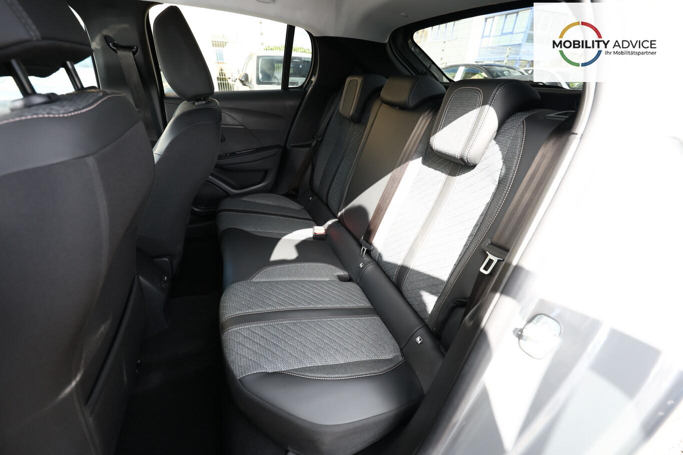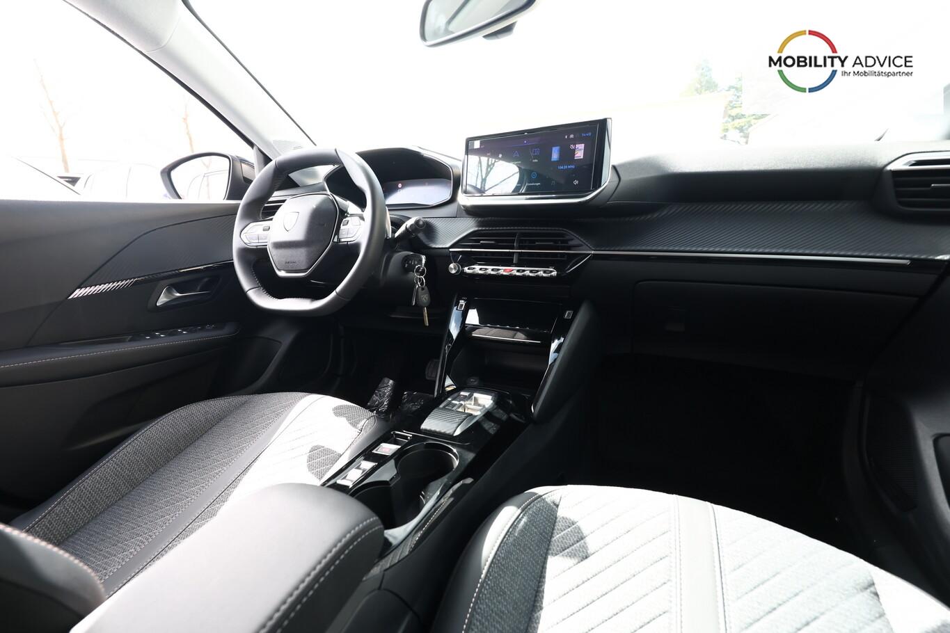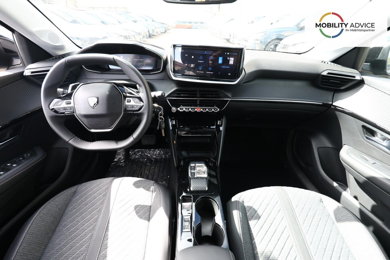 Sicht & Navigations-Paket (Multifunktionsanzeige mit HD Touchscreen-Farbdisplay 10 Zoll / Navigationssystem i-Connect Advanced / USB-Anschlüsse (Typ C und Typ A) / USB-Schnittstelle / Rückfahrkamera mit 360° Umgebungsansicht / Peugeot Connect-Box / SOS-Taste (Notruf für Lokalisierung Fahrzeug) / Fahrassistenz-System: Totwinkel-Assistent (SAM)), 6 Lautsprecher, Bluetooth Freisprechanlage, Fahrassistenz-System: Spurhalteassistent, Kombiinstrument digital (10 Zoll), Kopf-Airbag-System vorn, LM-Felgen 16 Zoll, Reifen 195/55 R16, Schaltwippen am Lenkrad, Sitzbezug / Polsterung: Stoff/Kunstleder, Smartphone-Schnittstelle (Apple CarPlay / Android Auto), Fensterheber elektrisch hinten, sequentiell, mit Einklemmschutz (Fensterheber elektrisch vorn / Fensterheber elektrisch vorn links), Radioempfang digital (DAB+) (Radioempfang digital), Zentralverriegelung mit Fernbedienung (Fernbedienung für Zentralverriegelung), Außenspiegel elektr. verstell- und heizbar, beide (Außenspiegel elektr. verstell- und heizbar, links / Außenspiegel elektr. verstell- und heizbar, rechts), Außenspiegel mit Abdeckkappen schwarz, Frontscheibe geräuschdämmend, Innenraumfilter: Staub- und Pollenfilter, Innenspiegel mit Abblendautomatik, Karosserie: 5-türig, Kartentasche an Vordersitze, Mild-Hybrid 81 kW (Motor 1,2 Ltr. - 74 kW), Otto-Partikelfilter (GPF), Parkbremse elektrisch, Reifen-Reparaturkit, Sitz vorn links höhenverstellbar, Türgriffe außen Wagenfarbe, Warnanlage für Sicherheitsgurte, Anti-Blockier-System (ABS), Fahrassistenz-System: Aktiver Notbrems-Assistent (Active Safety Brake), Antischlupfregelung (ASR), Elektron. Stabilitäts-Programm (ESP, Bosch), Getriebe Automatik - Doppelkupplungsgetriebe (6-Stufen, Hybrid), Klimaautomatik, Airbag Beifahrerseite abschaltbar, Airbag Fahrer-/Beifahrerseite, Isofix-Aufnahmen für Kindersitz, Kopf-Airbag-System hinten, Mittelarmlehne vorn, Rücksitzlehne geteilt/klappbar, Seitenairbag vorn, Seitenscheiben hinten und Heckscheibe dunkel getönt, Zentralverriegelung inkl. Türverriegelung automatisch, Fahrmodusschalter, Fahrassistenz-System: Berganfahrhilfe, Fahrassistenz-System: Verkehrszeichenerkennung, Geschwindigkeits-Regelanlage (Tempomat) inkl. Geschwindigkeits-Begrenzeranlage, Lenkrad (Leder), Lenkrad mit Multifunktion, Servolenkung elektrisch, Außenspiegel elektr. anklappbar, Einschaltautomatik für Fahrlicht, Scheibenwischer mit Regensensor, Scheinwerfer Eco-LED, Tagfahrlicht LED, Einparkhilfe vorn und hinten, Fahrassistenz-System: Müdigkeitserkennungs-Sensor, Reifendruck-Kontrollsystem