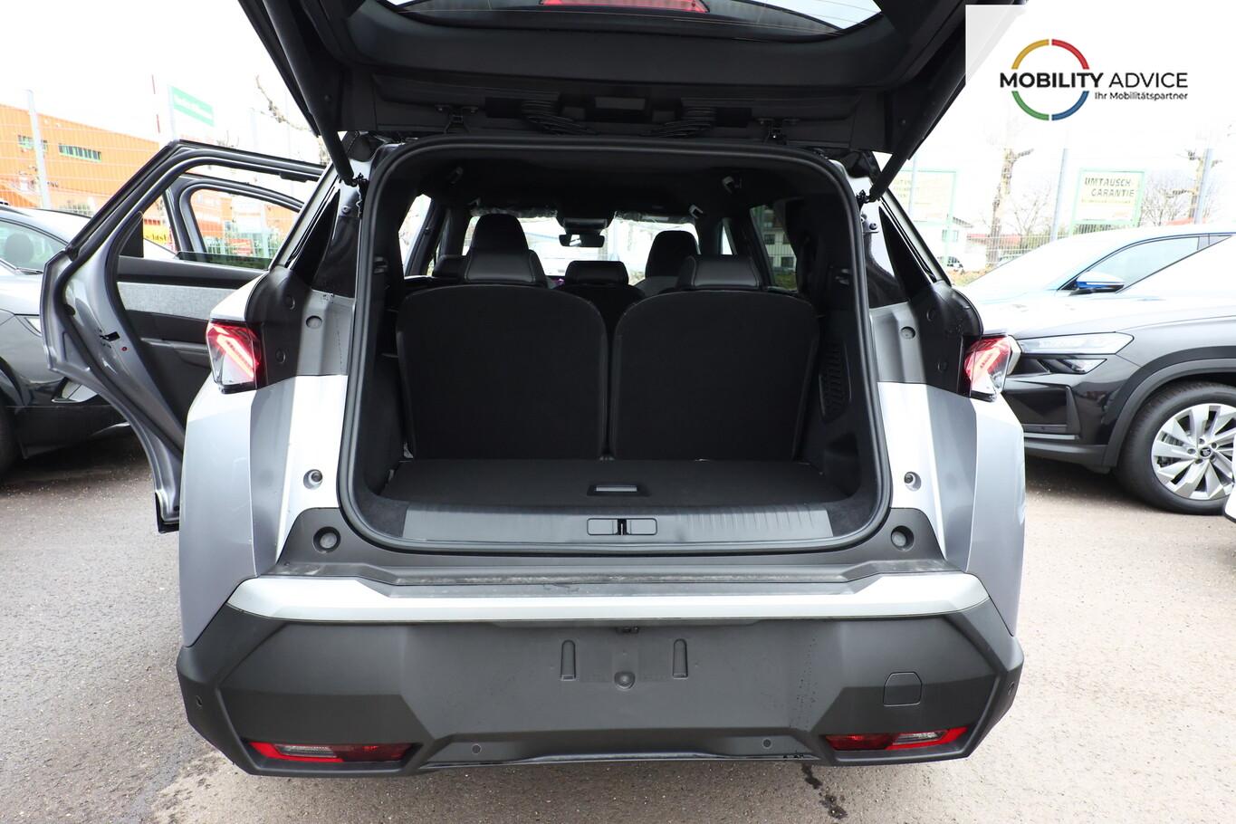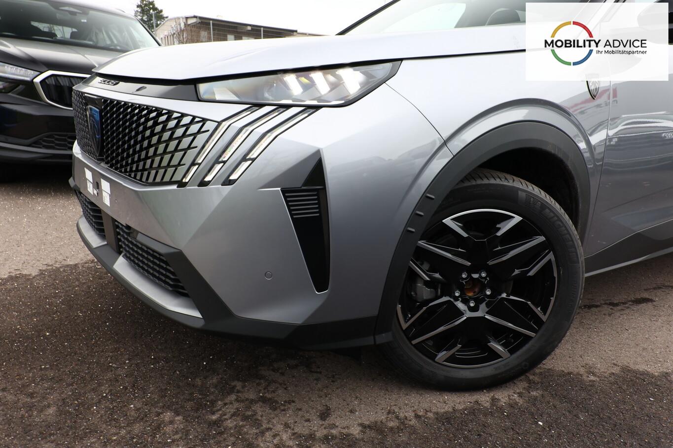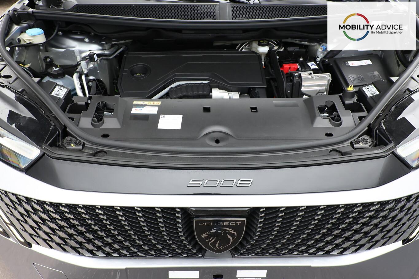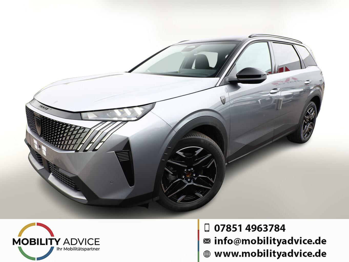 Komfort-Paket (Innenausstattung: Ziernähte farbig / Komfortsitze vorn / Lendenwirbelstütze Sitz vorn links und rechts, elektr. verstellbar / Sitzbezug / Polsterung: Alcantara / Kunstleder / Sitze vorn mit ausziehbarer Oberschenkelauflage / Sitze vorn mit Massagefunktion / Sitz vorn links elektr. verstellbar (mit Memory) / Sitzheizung hinten), Anhängerkupplung (Kugelkopf senkrecht demontierbar, Ausführung verbessert), 21"-Panoramadisplay, 3. Sitzreihe klappbar, 6 Lautsprecher, Ambientenbeleuchtung, Audiobedienung am Lenkrad, Dachreling schwarz, Einparkhilfe vorn, Fahrmodusschalter, Fensterheber elektr. hinten, Fensterzierleisten schwarz, Freisprecheinrichtung Bluetooth, Handschuhfach beleuchtet, Lenkrad (Leder), LM-Felgen 19 Zoll, Mild-Hybrid 107 kW (Motor 1,2 Ltr. - 100 kW), Navigationssystem i-Connect Advanced, Radioempfang digital (DAB+), Reifen 225/55 R19, Schadstoffarm nach Abgasnorm Euro 6e (EU6 EA), Smartphone Schnittstelle kabellos (Apple Car Play/Android Auto), USB-Anschluss, Außenspiegel und Spiegelfuss in Perla-Nera-Schwarz, Dachfarbe schwarz, Dachhimmel schwarz, Gepäckraumboden verschiebbar, variabel, Getränkehalter vorn, Innenspiegel mit Abblendautomatik, Karosserie: 5-türig, Lenkrad heizbar, Mittelarmlehne hinten, Mobile Online Dienste Mirror Screen, Otto-Partikelfilter (GPF), Parkbremse elektrisch, Pedale Aluminium, Radstand Standard, Sitze vorn höhenverstellbar, Sonnenblenden mit Make-up-Spiegel, Steckdose (12V-Anschluß) im Koffer-/Laderaum, Warnanlage für Sicherheitsgurte, Anti-Blockier-System (ABS), Fahrassistenz-System: Aktiver Notbrems-Assistent (Active Safety Brake Plus), Antriebsart: Frontantrieb, Elektron. Stabilitäts-Programm (ESP, Bosch), Getriebe Automatik - Doppelkupplungsgetriebe (6-Stufen, Hybrid), Klimaautomatik, getrennt regelbar Fahrer-/Beifahrerseite, Airbag Beifahrerseite abschaltbar, Airbag Fahrer-/Beifahrerseite, Fensterheber elektr. vorn, links mit Impulsgeber, Isofix-Aufnahmen für Kindersitz, Kopf-Airbag-System, Kopf-Airbag-System hinten, Mittelarmlehne vorn, Rücksitzbank geteilt/klappbar automatisch (40:20:40), Seitenairbag vorn, Seitenscheiben hinten und Heckscheibe getönt, Sitzheizung vorn, Zentralverriegelung / Startanlage Keyless System, Zentralverriegelung mit Fernbedienung, Kofferraumdeckel / Heckklappe elektr. betätigt (öffnen + schliessen, sensorgesteuert), Fahrassistenz-System: Autom. Distanzregelung (ACC inkl. Stop&Go-Funktion), Fahrassistenz-System: Berganfahrhilfe, Fahrassistenz-System: Verkehrszeichenerkennung, Rückfahrkamera mit 180° Umgebungsansicht, Peugeot Connect-Box / SOS-Taste (Notruf für Lokalisierung Fahrzeug), Lenkrad mit Multifunktion, Lenkrad mit Schaltwippen/-tasten, Servolenkung elektrisch, Außenspiegel elektr. anklappbar, Außenspiegel elektr. verstell- und heizbar, beide, Außenspiegel mit Umfeldleuchte, Einschaltautomatik für Fahrlicht, Fahrassistenz-System: Fernlichtassistent, Scheibenwischer mit Regensensor, Scheinwerfer Full-LED, Tagfahrlicht LED, Einparkhilfe hinten, Fahrassistenz-System: aktiver Spurassistent (Lenkunterstützung), Fahrassistenz-System: Müdigkeitserkennungs-Sensor, Reifendruck-Kontrollsystem