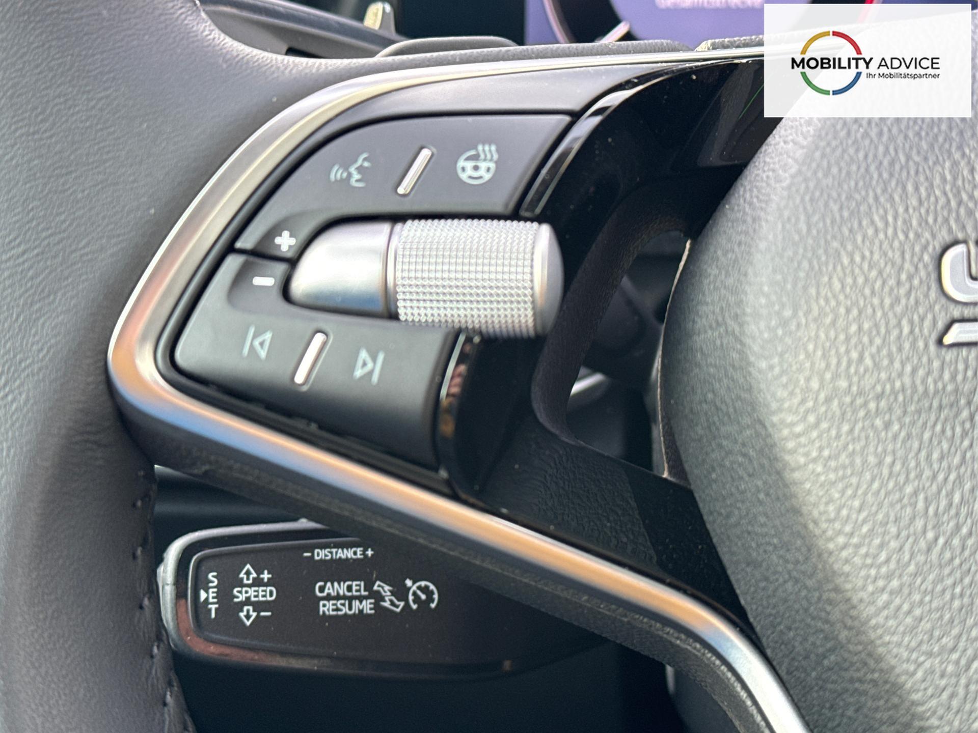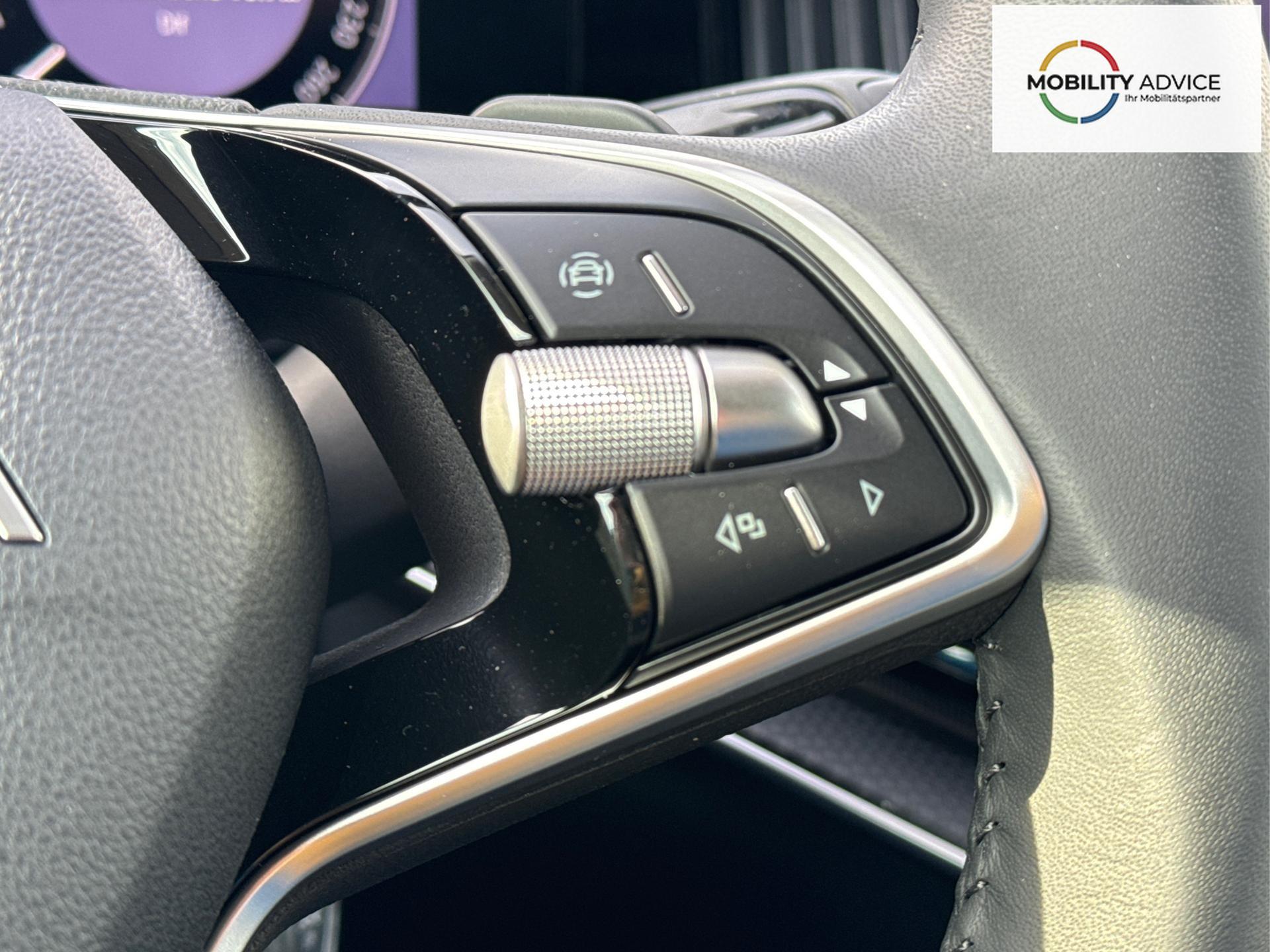 • Beheizbares Lederlenkrad mit Multifunktionstasten und Schaltwippen vorhanden