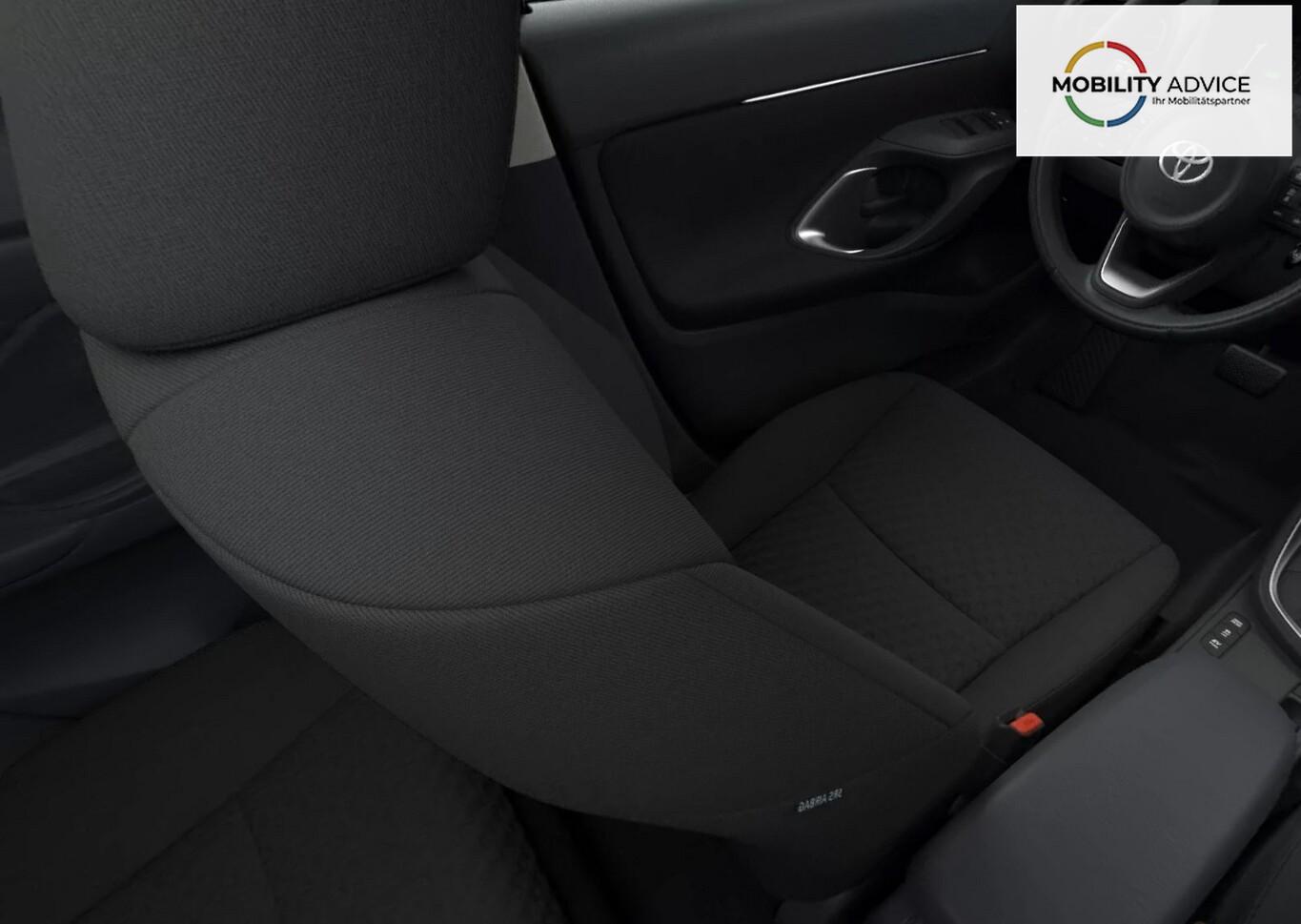 6 Lautsprecher, Bordcomputer, Dachreling schwarz, Fahrassistenz-System: Front-Kollisionswarner (FCW), Fahrassistenz-System: Notbrems-Assistent (AEB), Fahrassistenz-System: Spurverfolgungs-Assistent (LTA), Heckleuchten LED, Kabellose Smartphone-Schnittstelle (Apple CarPlay & Android Auto), Lenkrad heizbar, Mittelarmlehne vorn, Navigation in Verbindung mit dem Smartphone (über Apple Carplay / Android Auto /...), Ottopartikelfilter (OPF), Rückfahrkamera, Rücksitzbank geteilt, umklappbar (60/40), Sitzheizung vorn, Sommerreifen 205/65 R16, Audiosystem: Multimedia Toyota Touch (DAB-Tuner (Radioempfang digital) / Bluetooth-Schnittstelle / Freisprechanlage Bluetooth / USB-Schnittstelle), Dachantenne, Elektr. Bremskraftverteilung, Geschwindigkeits-Begrenzeranlage, Hybrid 85 kW (Motor 1,5 Ltr. - 68 kW), Innenraumfilter: Staub- und Pollenfilter mit Aktivkohlefilter, Karosserie: 5-türig, Multimedia Display (7,0 Zoll), Parkbremse elektrisch (EPB), Radstand 2560 mm, Sitz vorn links höhenverstellbar, Sitzbezug / Polsterung: Stoff, Stoßfänger Wagenfarbe, Türgriffe außen Wagenfarbe, Anti-Blockier-System (ABS), Bremsassistent, Fahrassistenz-System: Pre-Collision-System (PCS), Antriebsart: Frontantrieb, Elektron. Stabilitäts-Programm mit Antriebs-Schlupfregelung (VSC mit TRC), LM-Felgen 6,5x16, Getriebe Automatik stufenlos - Multidrive ECVT, Klimaautomatik, Airbag Fahrer-/Beifahrerseite, Fensterheber elektrisch vorn + hinten, Fernbedienung für Zentralverriegelung, Isofix-Kindersitz-System, Seitenairbag vorn, Zentralverriegelung mit Fernbedienung, Fahrassistenz-System: Verkehrszeichenerkennung (RSA), Geschwindigkeits-Regelanlage (Tempomat) mit Abstandsregelung, Lenkrad (Leder), Servolenkung elektrisch, Außenspiegel elektr. verstell- und heizbar, Fahrassistenz-System: Fernlichtassistent (Abblendautomatik Fahrlicht, AHB), Nebelscheinwerfer LED, Scheibenwischer mit Regensensor, Tagfahrlicht LED, Fahrassistenz-System: aktiver Spurhalteassistent (Lenkunterstützung), Fahrassistenz-System: Fahrassistent proaktiv (PDA), Fahrassistenz-System: Kreuzungs-Assistent, Fahrassistenz-System: Müdigkeitserkennungs-Sensor, Fahrassistenz-System: Spurhalteassistent (LDA), Reifendruck-Kontrollsystem