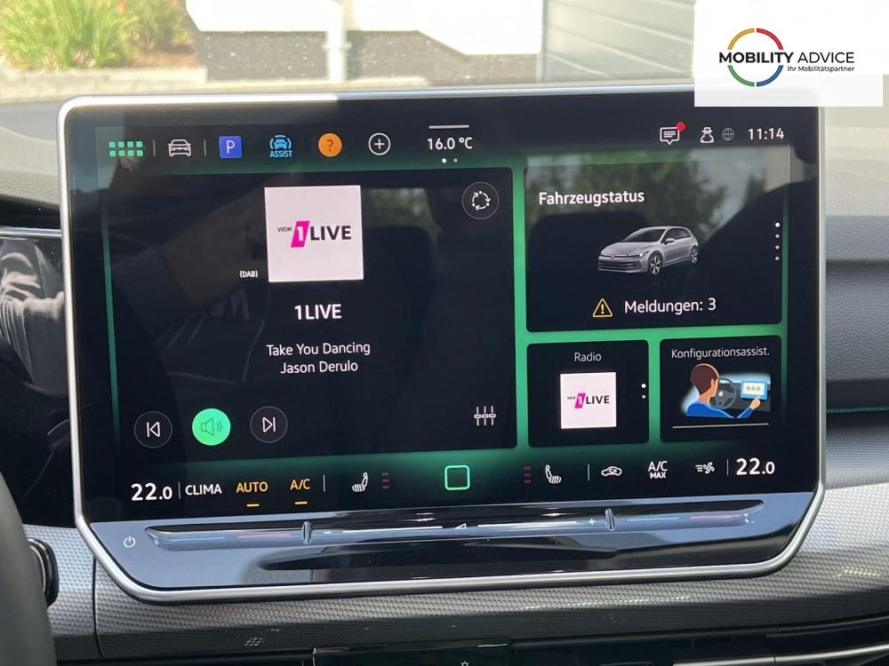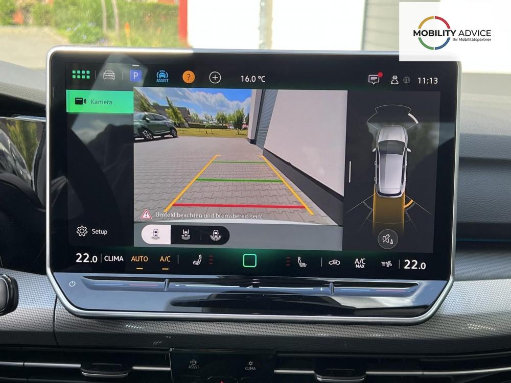 IQ.LIGHT - LED-Matrix-Scheinwerfer 3D-LED-Rückleuchten mit dynamischer Blinkleuchte + Abbiege- und Schlechtwetterlicht + Dynamischer Fernlichtassistent Dynamic Light Assist + Innenspiegel automatisch abblendend + IQ.LIGHT - LED-Matrix-Scheinwerfer + Leuchtweitenregulierung dynamisch, mit dynamischem Kurvenfahrlicht + Volkswagen Logo vorn, Leiste zwischen den Scheinwerfern sowie Türgriffmulden beleuchtet