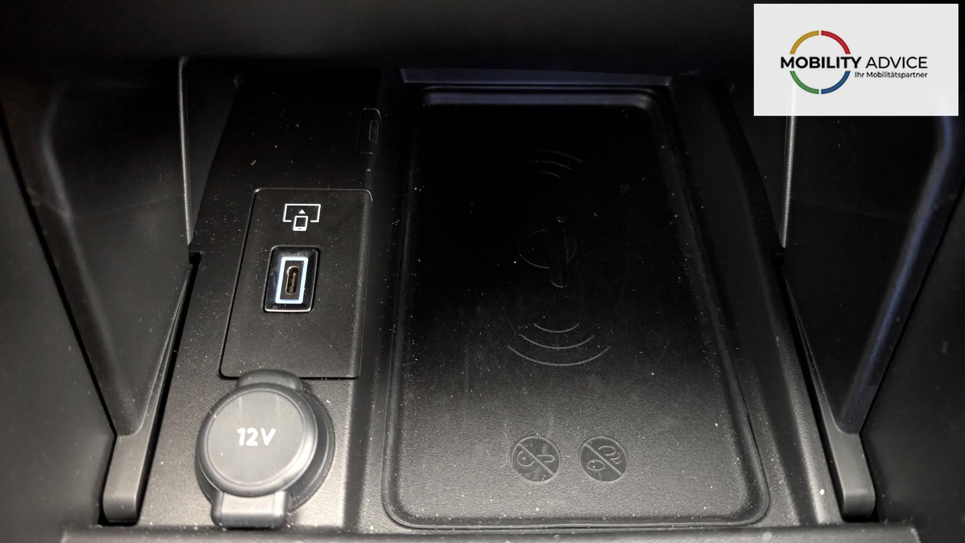 • USB-Anschlusse 1 USB-C-Anschluss unter der vorderen Mittelarmlehne, 1 USB-C-Anschluss in der Konsole und 2 USB-C-Anschlusse fur die hinteren Passagiere.